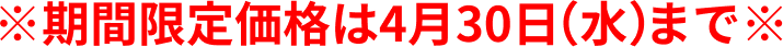 ※期間限定のため、期限を過ぎた時点で通常価格になります。ご希望の場合はお早めにお申し込みください。